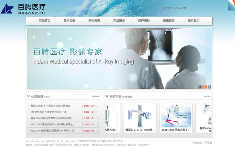 上海百騰醫(yī)療裝備實業(yè)有限公司成立于1994年,是一家專業(yè)生產(chǎn),開發(fā)和銷售放射系列產(chǎn)品的企業(yè)。公司成立十余年來銷售的放射產(chǎn)品近千余臺,C型臂系列X線機等數(shù)百臺,用戶遍布全國二十多個省市。