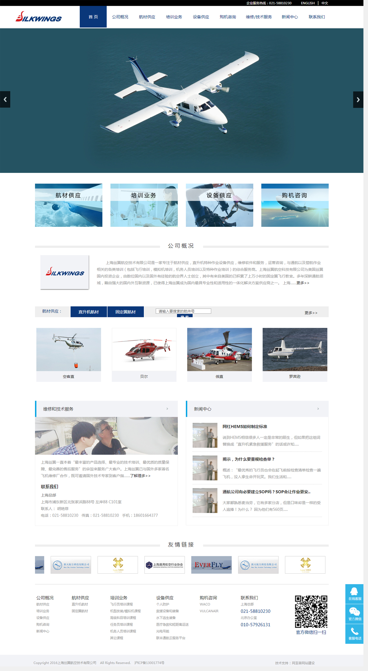 上海絲翼航空技術(shù)有限公司是一家專(zhuān)注于航材供應(yīng),直升機(jī)特種作業(yè)設(shè)備供應(yīng),維修軟件和服務(wù),運(yùn)營(yíng)咨詢(xún),與通航以及警航作業(yè)相關(guān)的各類(lèi)培訓(xùn)(包括飛行培訓(xùn),模擬機(jī)培訓(xùn),機(jī)務(wù)人員培訓(xùn)以及特種作業(yè)培訓(xùn))的綜合服務(wù)商。